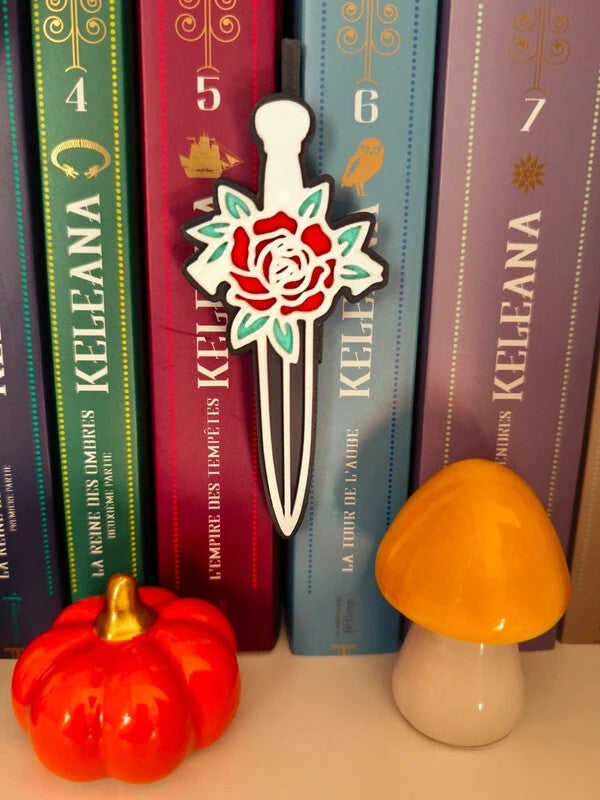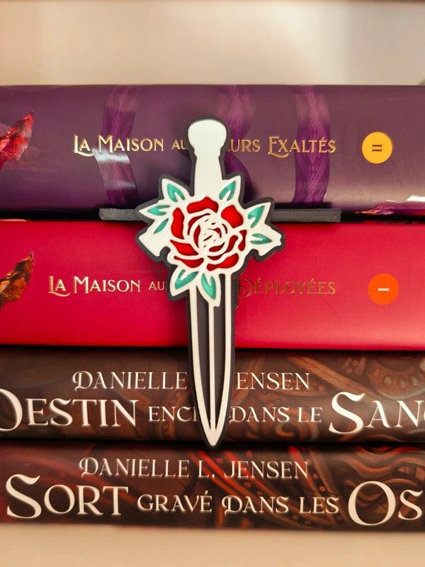 Apportez une touche de danger et de romance à vos étagères avec cet insert "Dague et Rose". Ce design élégant et contrasté est l'accessoire parfait pour accompagner vos sagas de fantasy où les épées croisent les sentiments.