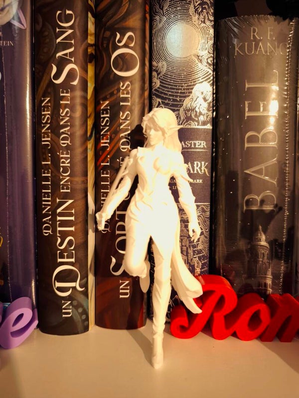 Plongez dans l'univers de la "Romantasy" avec cette somptueuse figurine de guerrière fae, capturée en plein mouvement. Alliant grâce elfique et détermination martiale, cette pièce est l'accessoire indispensable pour sublimer votre bibliothèque ou votre espace de lecture.