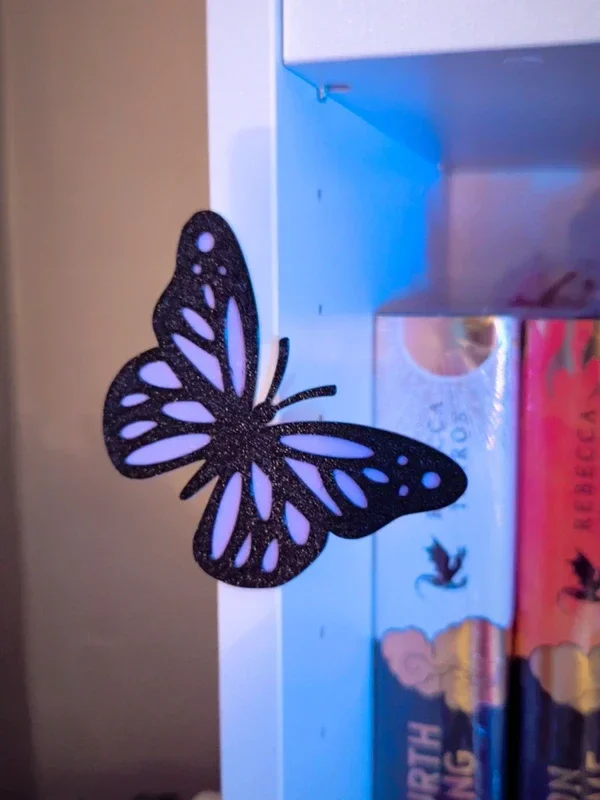 Sublimez votre bibliothèque en un instant. Ce lot de 4 papillons noirs aux ailes délicatement ajourées est l'accessoire indispensable pour donner du relief et de la poésie à vos étagères. Inspirés des univers de Romantasy et de nature féerique, ils semblent s'être posés là, par magie, au milieu de vos sagas préférées.