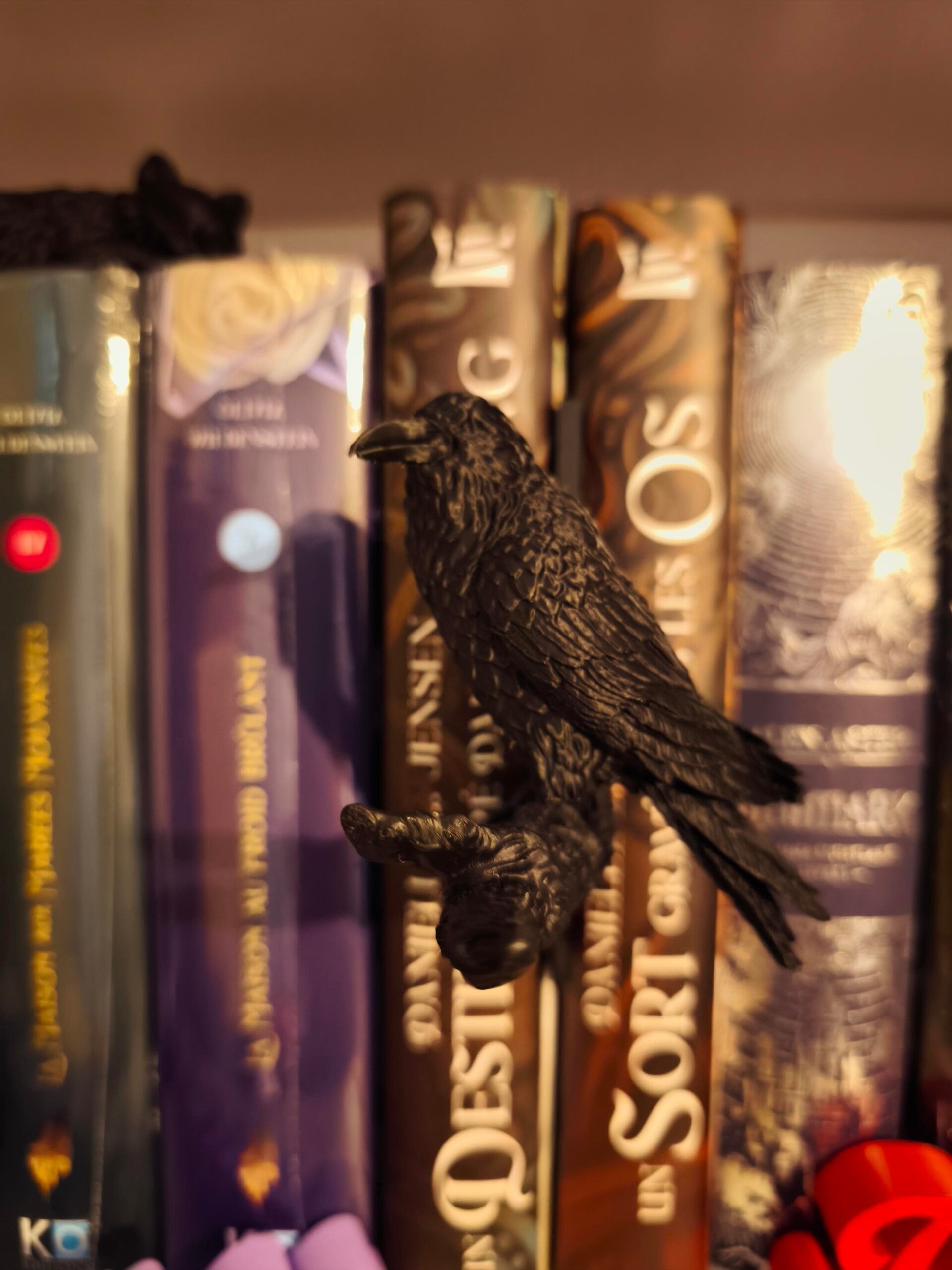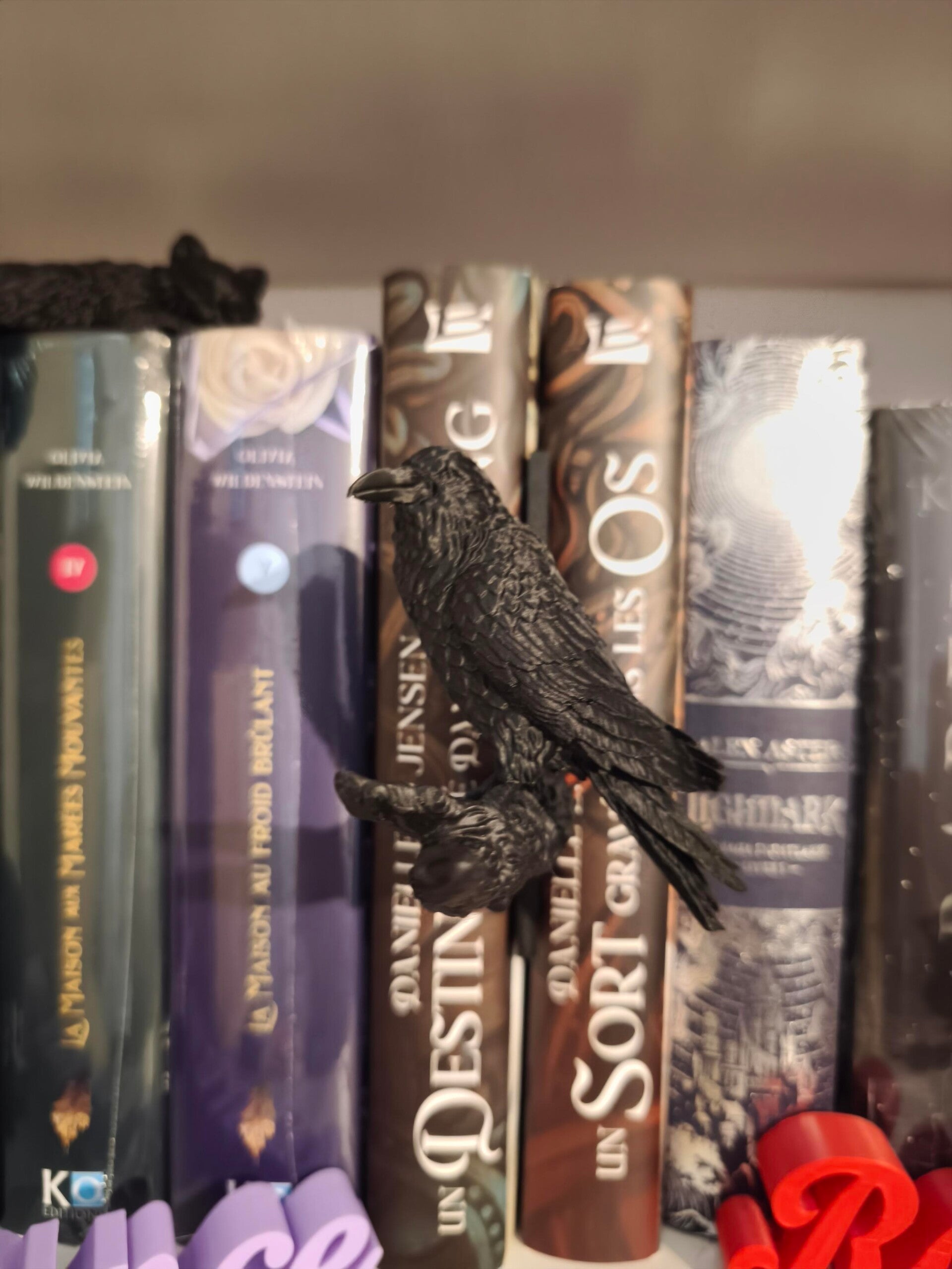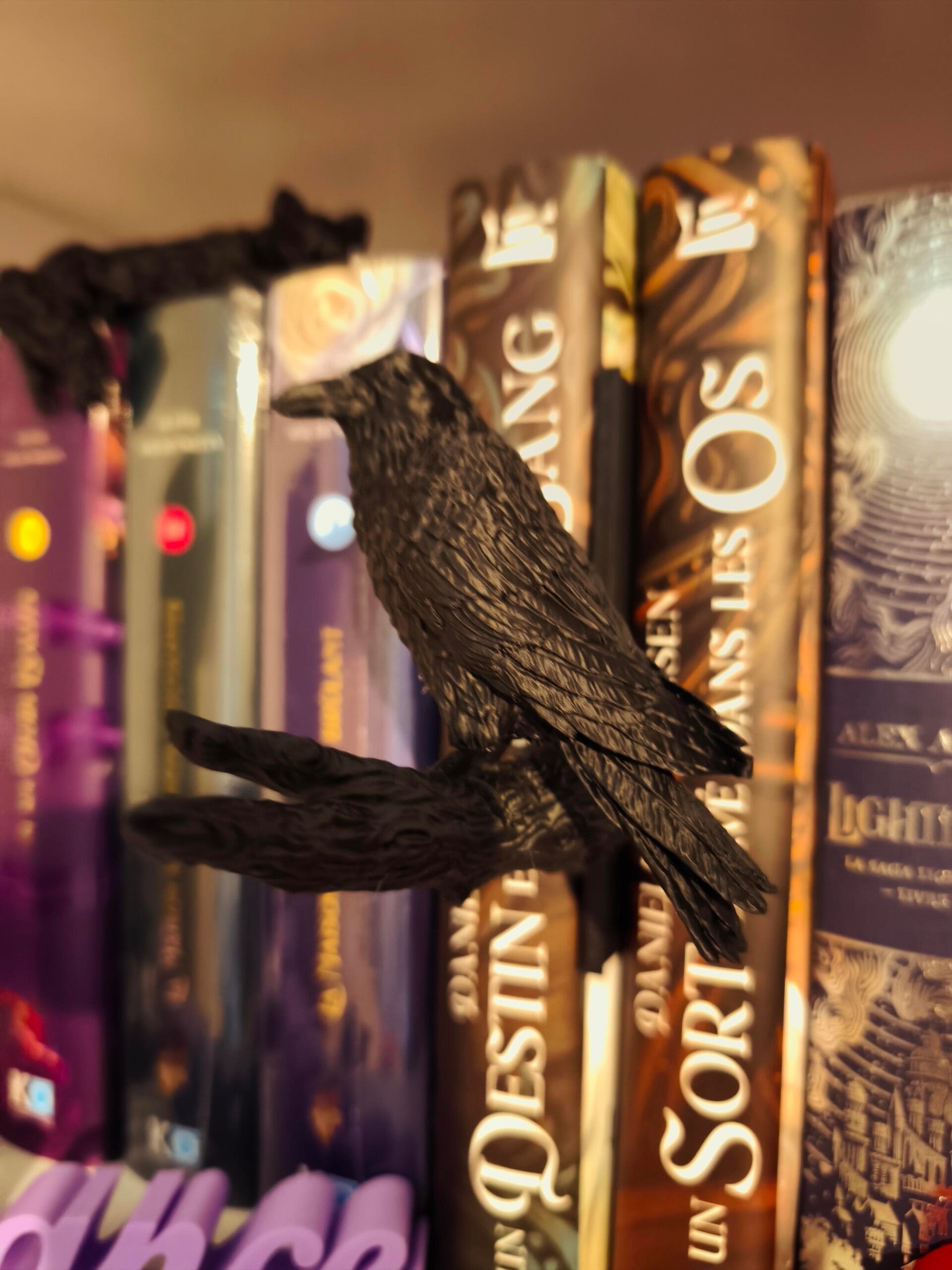 Apportez une touche de mystère et de poésie gothique à votre collection de livres avec cet insert de bibliothèque unique. Représentant un corbeau majestueux perché sur une branche noueuse, cet accessoire transforme instantanément votre étagère en un décor de roman noir ou de haute fantasy.